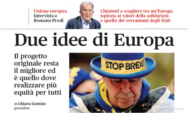Alle elezioni si confronteranno, il prossimo 26 maggio, due visioni dell'Europa: quella ispirata ai valori della solidarietà e della coesione e quella invece propagandata da sovranismi e nazionalismi. “Due idee d'Europa” è il titolo dell'intervista – su Vita Pastorale di maggio – di Chiara Genisio al professor Romano Prodi, che della Commissione Europea è stato presidente, dal 1999, per i cinque anni “caldi” del passaggio all'Euro e dell'allargamento dell'Unione a 25 Stati membri.