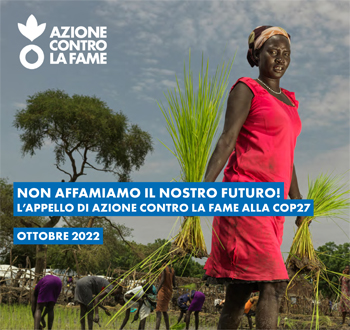 Nel mese di ottobre Azione Contro la Fame (Acf) ha diffuso un position paper in vista della Conferenza Onu sul clima (Cop27) – in programma dal 6 al 18 novembre a Sharm el-Sheikh in Egitto – dal titolo: Non affamiamo il nostro futuro! L’appello di Azione Contro la Fame alla Cop27 (qui il testo integrale).