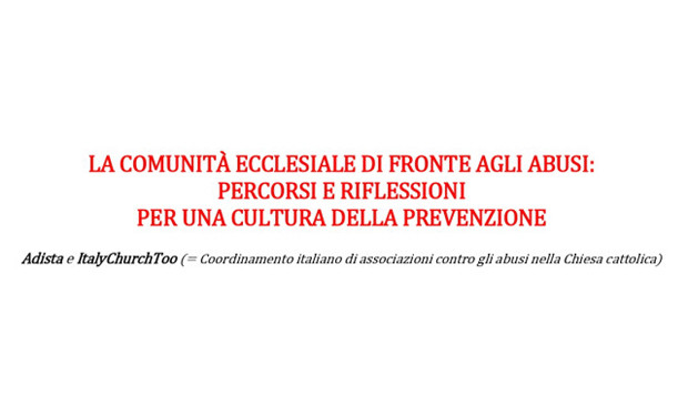 MILANO - Noi Siamo Chiesa (sezione italiana del Movimento "We Are Church International" per la riforma della Chiesa Cattolica), #ItalyChurchToo (Coordinamento italiano di associazioni contro gli abusi nella Chiesa cattolica) e settimanale Adista invitano a partecipare al secondo Convegno sul tema: "La comunità ecclesiale di fronte agli abusi. Percorsi e riflessioni per una cultura della prevenzione", che si terrà sabato prossimo, 15 novembre 2025, ore 9.30-18.30, presso l'Auditorium San Marco (piazza San Marco 2, Milano).